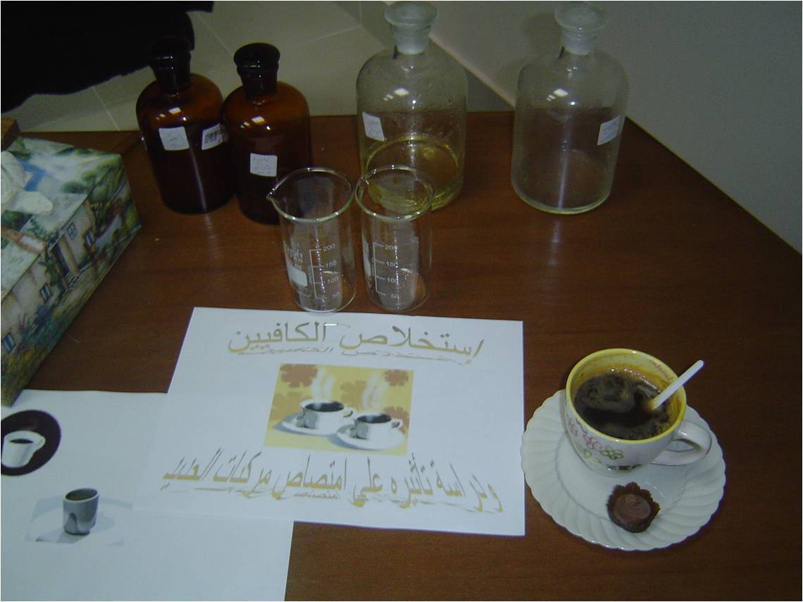 وانا عندي مشكله واطلب مساعدتك فيها..انا طالبه من جامعه ام القرى وخريجه ان شاء الله هذه السنه..طلبت مني دكتوره ماده الاطياف تقديم مشروع مبسط خلال ثلاث اسابيع القادمه..واعجبتني تجربه استخلاص الكافين واعاده تدور الورقه